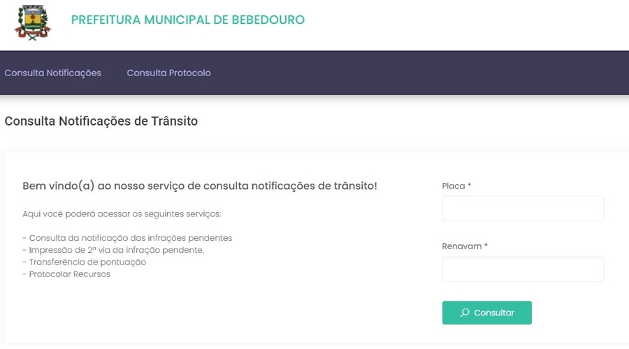 O Departamento Municipal de Trânsito e Transporte (DMTT) implantou um novo recurso para os motoristas recorrerem das multas por infrações registradas no município. Essa opção está disponível no site da Prefeitura de Bebedouro, na aba "serviços", link "consulta de notificações de trânsito", ou através do site www.bebedouro.sipladu.com.br.