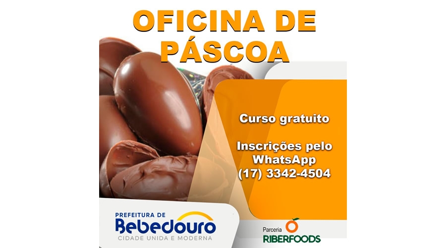 O Fundo Social de Solidariedade (FSS), em parceria com a Riberfoods, abre inscrições para o curso Oficina de Páscoa a partir da próxima segunda-feira (15). O treinamento será realizado no dia 10 de março, às 18h, através da plataforma Zoom.