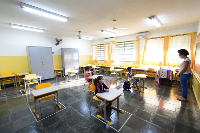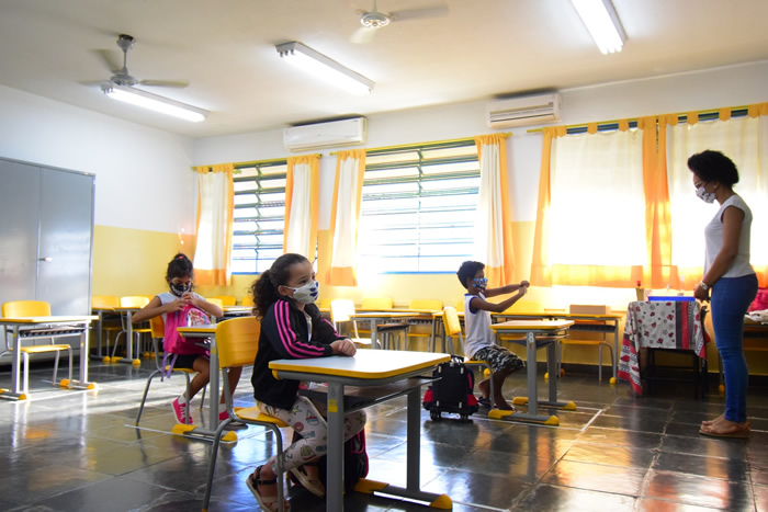 Ensino híbrido - Na primeira fase a criança frequentará a escola uma vez por semana. As segundas-feiras serão destinadas para o planejamento dos professores; as terças-feiras para as turmas da letra A, as quartas para as turmas B, as quintas para as C e as sextas-feiras para as D, respeitando o limite de até 25% da capacidade.