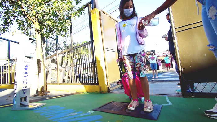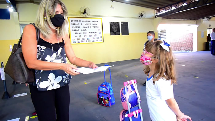 A sorridente Lorena chegou com um presente. “Estava com muita saudade de tudo. Desenhei minha professora, minhas amigas e minha irmã. Estou muito feliz por voltar à escola”, disse a aluna do 3º ano, antes de entrar para a sala de aula.