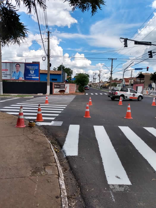 Recentemente, o DMT reforçou a pintura da faixa de pedestres da Avenida Pedro Paschoal, em frente ao Terminal Rodoviário. Serviço que também foi realizado na Avenida Quito Stamato com Avenida Major Eduardo da Silva Pereira e nas ruas Rubião Junior e Brandão Veras.