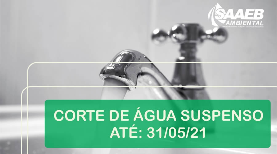 O SAAEB Ambiental informa que está prorrogada até o dia (31) a suspensão do corte do serviço de água por falta de pagamento. O Programa de Parcelamento Incentivado (PPI) negocia as contas de água em atraso com as famílias que foram afetadas pela pandemia.