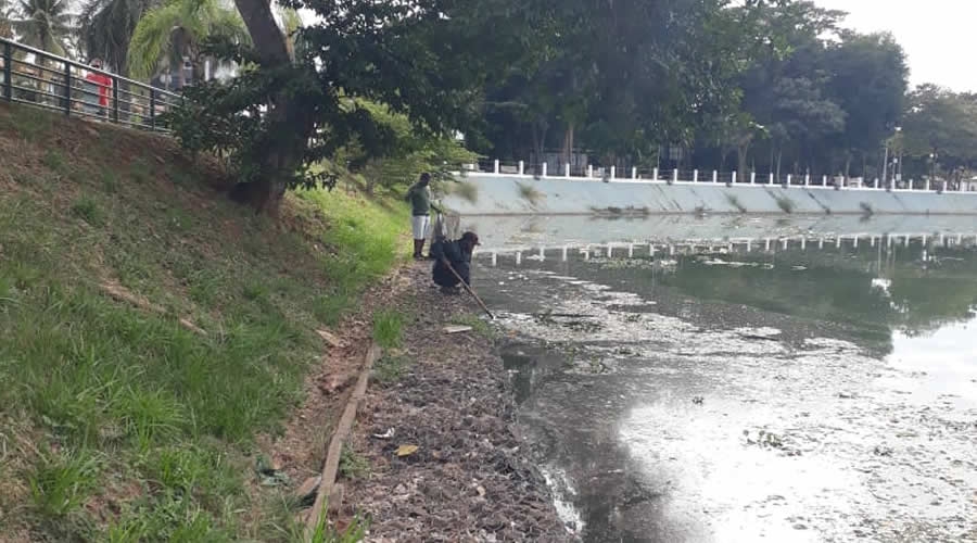 O Corpo de Bombeiro auxiliou a equipe com o empréstimo de um barco e um motor para a limpeza das áreas mais fundas do lago. A Garagem Municipal também realiza com frequência o corte da grama do local, além da poda de árvores e recolhimento do lixo.