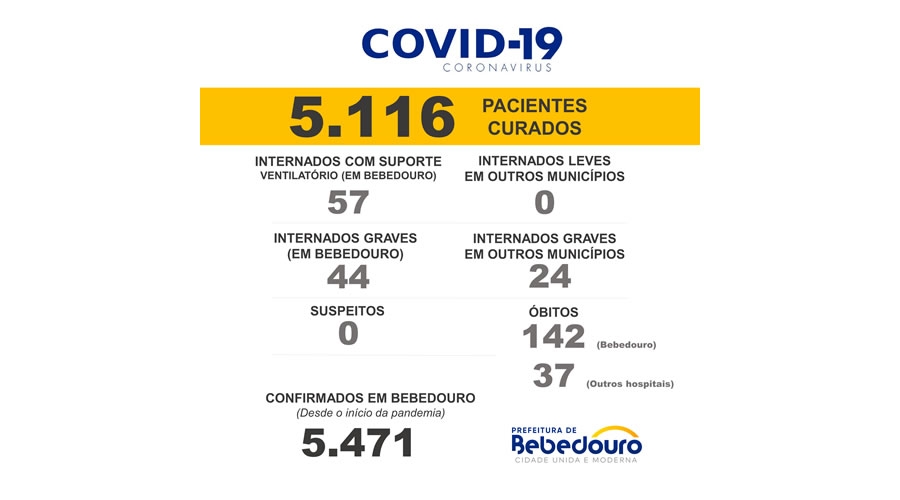 Até o momento, o município contabiliza 5.471 casos confirmados da Covid-19.