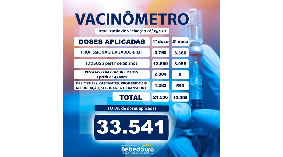 Vacinação em Bebedouro segue uma referência em planejamento, agilidade e organização; já imunizamos quase 28% da população com a primeira dose e 15,5% com a segunda. Vem conferir!