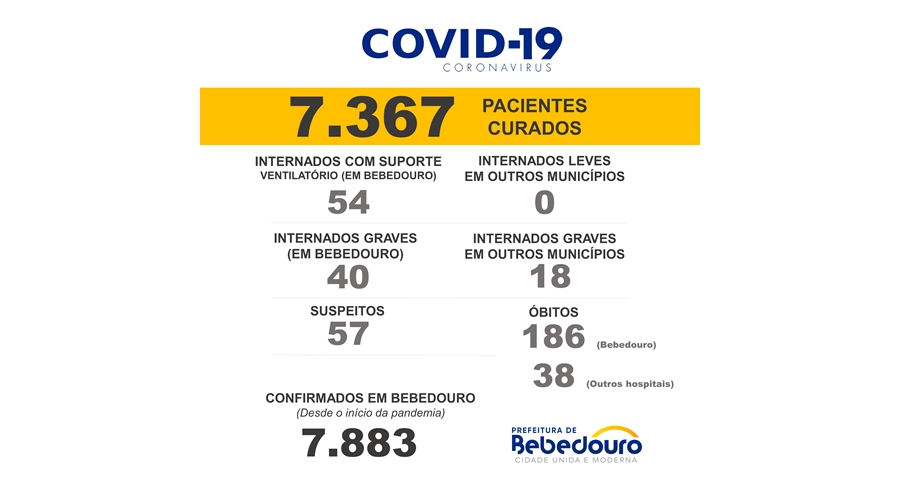 186 óbitos confirmados em Bebedouro e 38 em outros hospitais