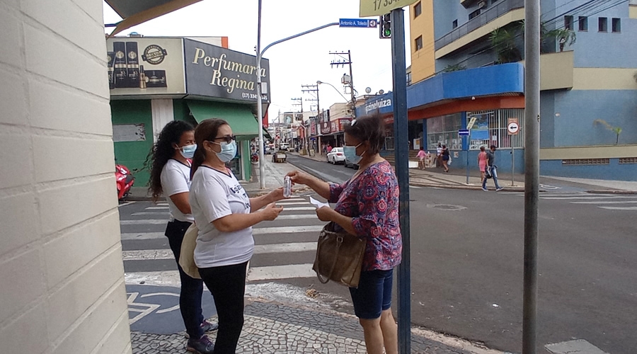 Profissionais da Secretaria Municipal de Saúde e da Ronda Covid estão alocados nas principais ruas do comércio para garantir o cumprimento de regras sanitárias no combate ao novo coronavírus.