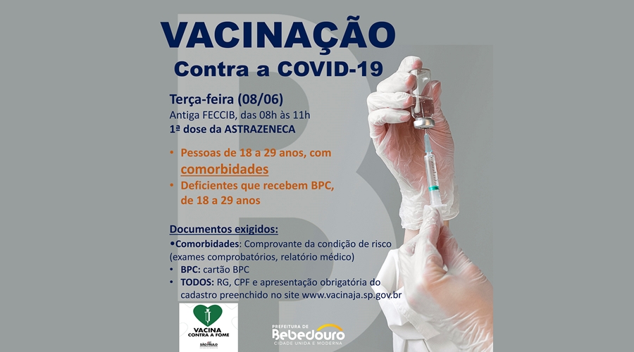Comorbidades: comprovante da condição de risco (exames comprobatórios, relatórios médicos), RG, CPF e cadastro preenchido no www.vacinaja.sp.gov.br