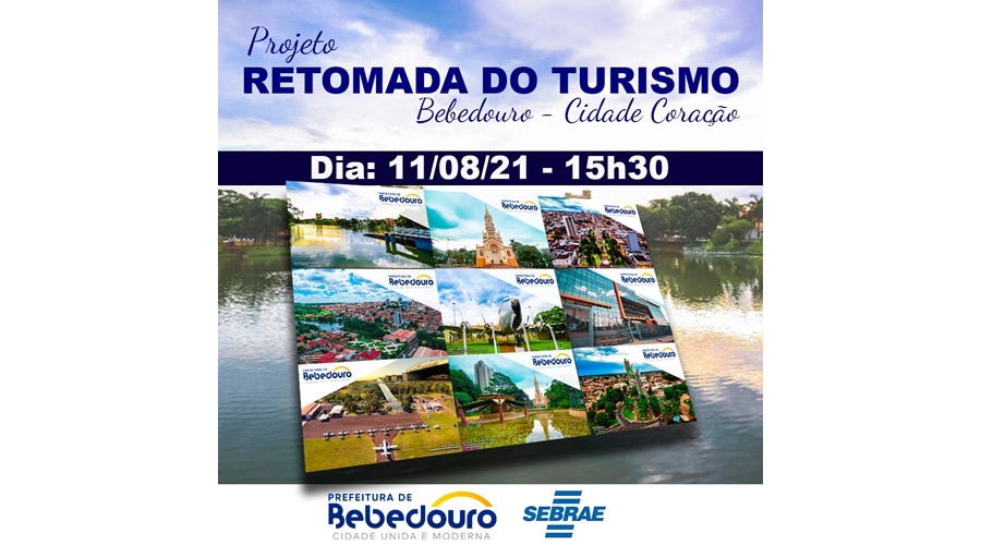 A Coordenadoria Municipal de Turismo, em parceria com o SEBRAE, informa que a reunião online para a apresentação do projeto “Retomada do Turismo – Bebedouro, Cidade Coração”, foi transferida para a terça-feira (11), às 15h30. A participação é gratuita e os interessados podem se inscrever pelo link https://forms.gle/QyJcRGqX7ejipvcY6