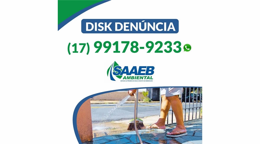 O SAAEB (Serviço Autônomo de Água e Esgoto de Bebedouro), visando a necessidade do uso consciente da água, utilizará o aplicativo WhatsApp, como Disk Denúncia, para flagrar por meio de foto o desperdício de água, lavando calcadas, telhados ou carros.