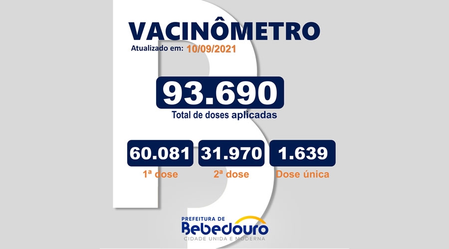 Vacinação avança em Bebedouro! Quase 78% da população total já recebeu a 1ª dose da vacina e 43% já está totalmente imunizada.
