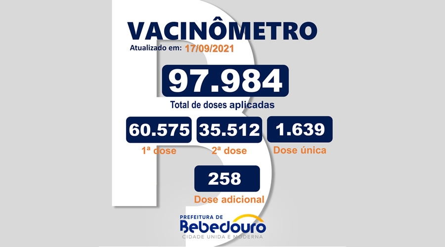 A vacinação avança em Bebedouro! 78% da população geral já recebeu a 1ª dose e 48% está com a imunização completa (2ª dose ou dose única). No Brasil, apenas 65,8% recebeu a 1ª dose e 36,47% está totalmente vacinada.