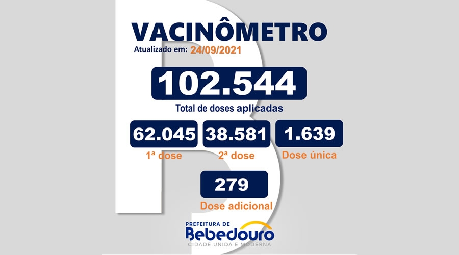 A vacinação avança em Bebedouro! 80% da população geral já recebeu a 1ª dose e 52% está com a imunização completa (2ª dose ou dose única). No Brasil, apenas 67,65% recebeu a 1ª dose e 39,58% está totalmente vacinada.