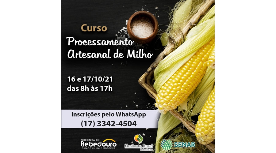 O Fundo Social de Solidariedade (FSS), em parceria com o SENAR/Sindicato Rural de Bebedouro, está com inscrições abertas para o curso de Processamento Artesanal de Milho, através do WhatsApp (17) 3342-4504. As vagas são limitadas.