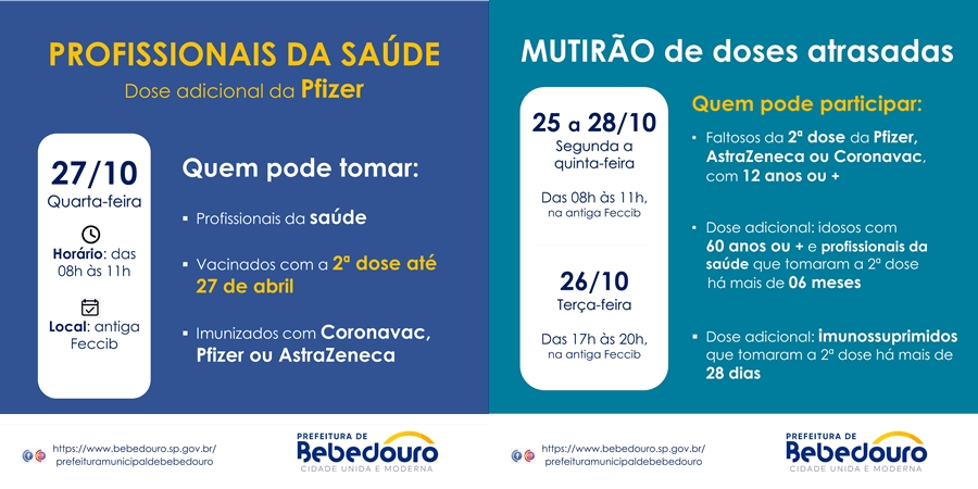 A prefeitura realiza mutirões em novos horários. Não esqueça: apenas com a 2ª dose você estará mais protegido contra o novo coronavírus.