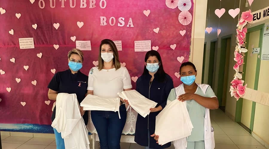 “Já entregamos 100 camisolas para o Hospital Municipal Júlia Pinto Caldeira e, agora, iniciamos a doação para as unidades de saúde. Começamos pela ESF Dr. Moacyr Caldeira e vamos ampliar para todas as ESFs”, informa Cristiane Carone Seren.