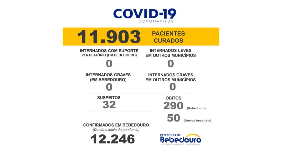 A Prefeitura de Bebedouro informa que foram confirmados 27 negativos, 0 curados e 01 caso positivo nesta quarta-feira (27).