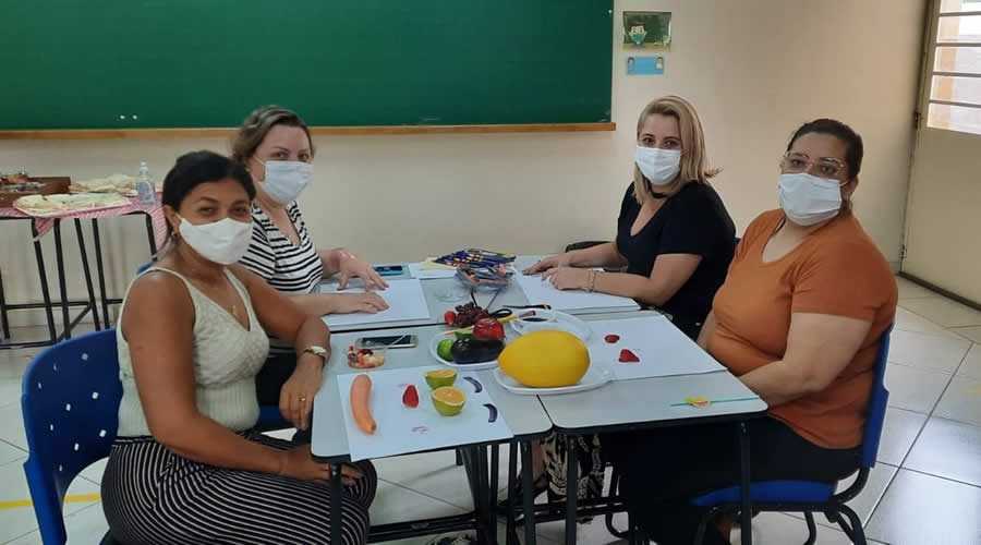 A Secretaria Municipal de Educação de Bebedouro (SEMEB) realizou uma oficina para gestoras da Educação Infantil 2 sobre arte com frutas e legumes, nesta terça-feira (26). A atividade foi ministrada pela coordenadora da educação infantil na SEMEB, Karina Francisco.