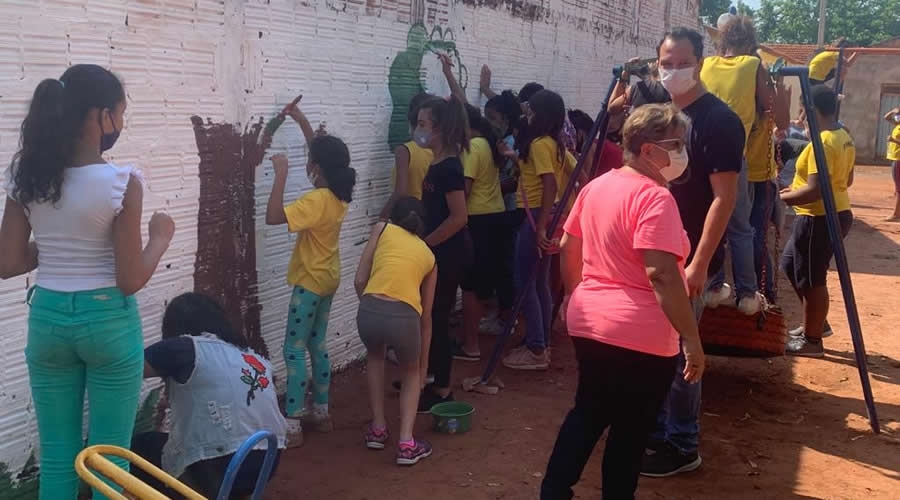 Os alunos da EMEB João Pereira Pinho, da EE Gustavo Fernando Kuhlmann e voluntários da ONG Buriti participaram de uma ação ambiental nesta quarta-feira (10). As crianças ajudaram na pintura de um mural e de um parque infantil no Jardim União.