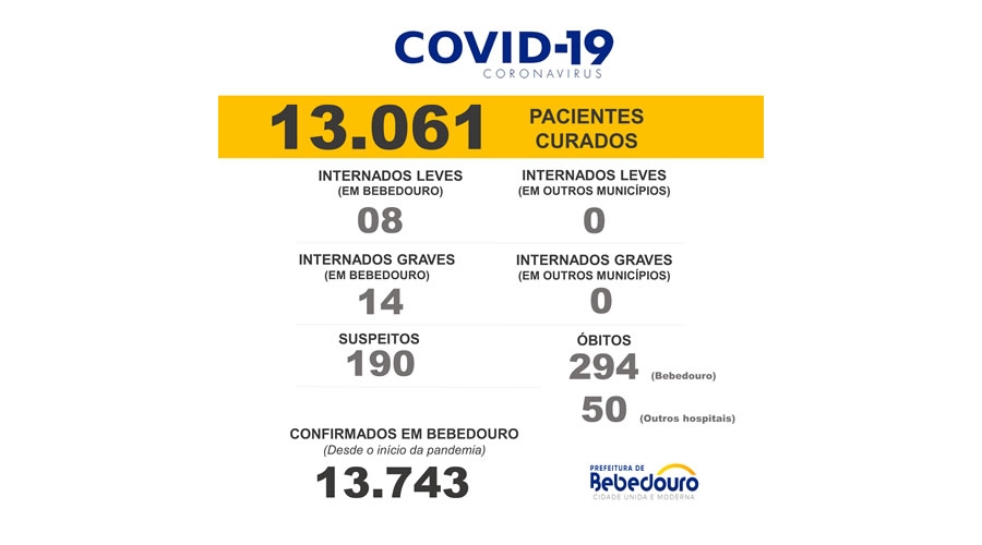 Até o momento, o município contabiliza 13.743 casos confirmados da Covid-19.