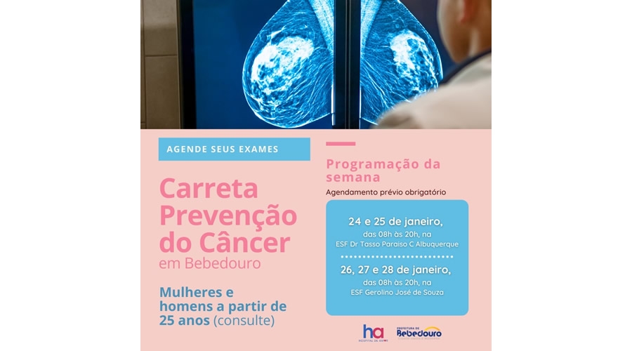 Os exames de prevenção ao câncer de mama, útero, boca, cólon e reto continuam nesta semana! Já agendou o seu?