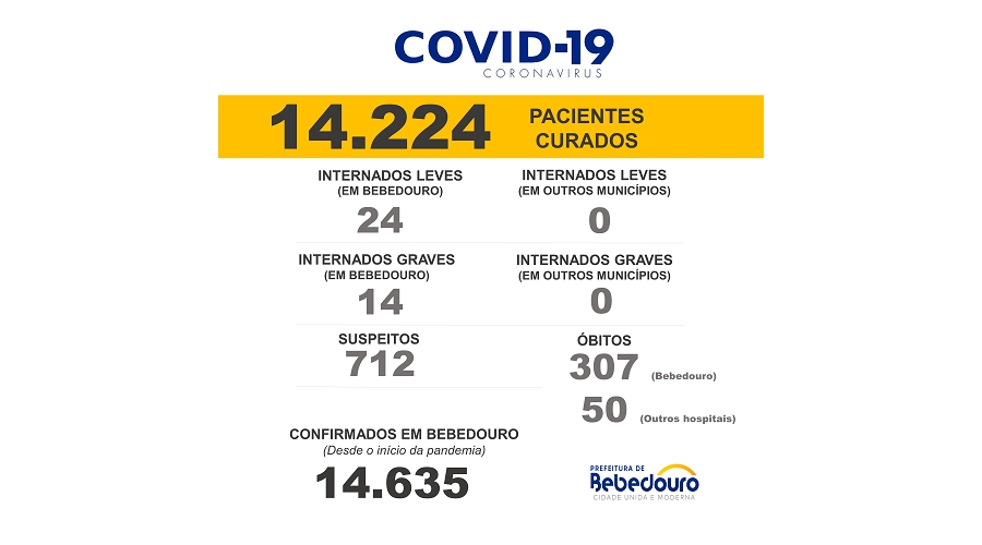 Até o momento, o município contabiliza 14.635 casos confirmados da Covid-19.