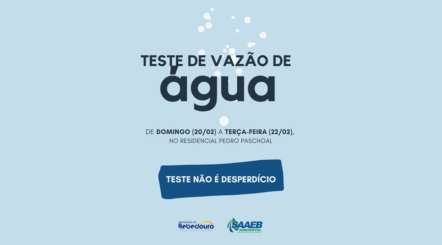 Durante período de testes, haverá vazão de água (e não desperdício de água)
