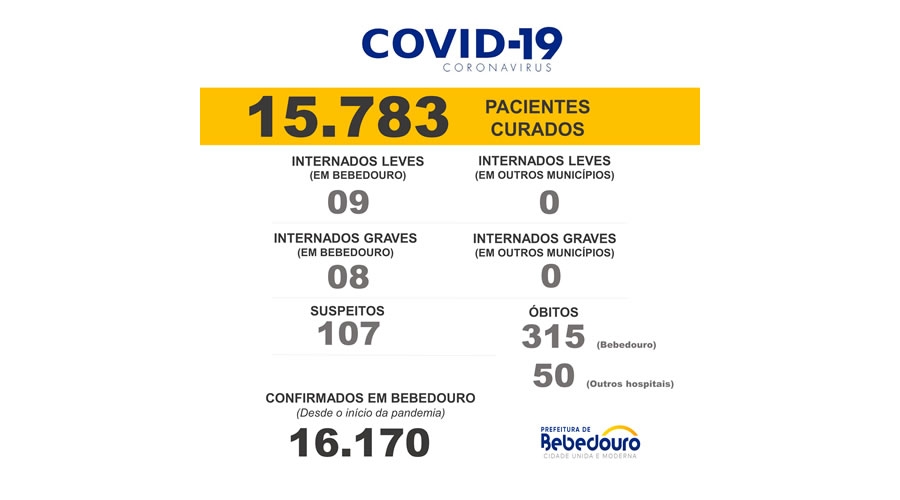 Até o momento, o município contabiliza 16.170 casos confirmados da Covid-19.