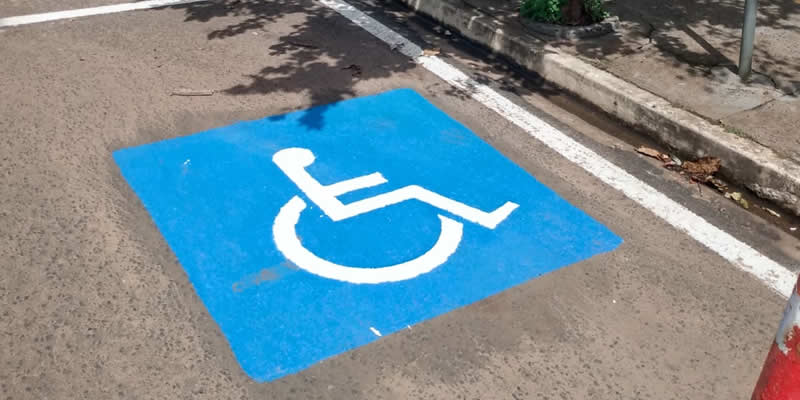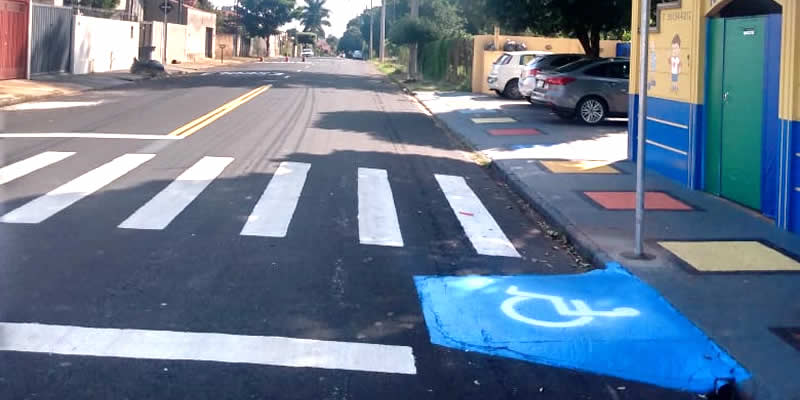 A equipe sinalizou as vagas reservadas para deficientes, idosos, veículos oficiais e motos, e deu nova pintura da faixa de pedestres.