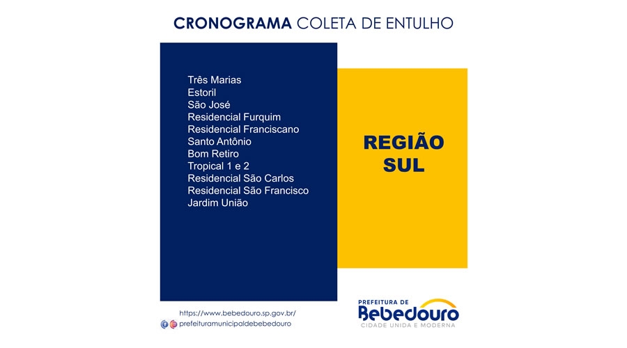 A Prefeitura de Bebedouro continua o trabalho de limpeza da cidade. Nesta semana, as equipes recolhem entulhos, galhos de árvores, grama e resíduos de construção na região sul.