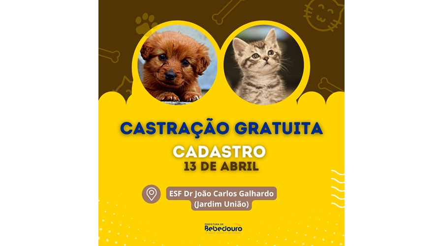 É cadastro prévio, com apresentação de cópias do RG, CPF, comprovante de renda e residência. “Cães e gatos podem ser castrados a partir dos 06 meses de vida. Vamos dar preferência na castração de fêmeas para o melhor controle da natalidade. É importante estar atento e procurar a unidade de saúde para o cadastro na data correta”, informa a coordenadora do setor, Regina Melanda.