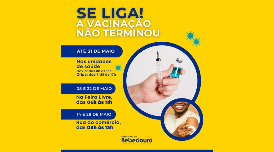 A Secretaria Municipal de Saúde continua a vacinação de todas as pessoas a partir de 05 anos contra a Covid-19 e as de 60 anos ou + contra a Gripe.
