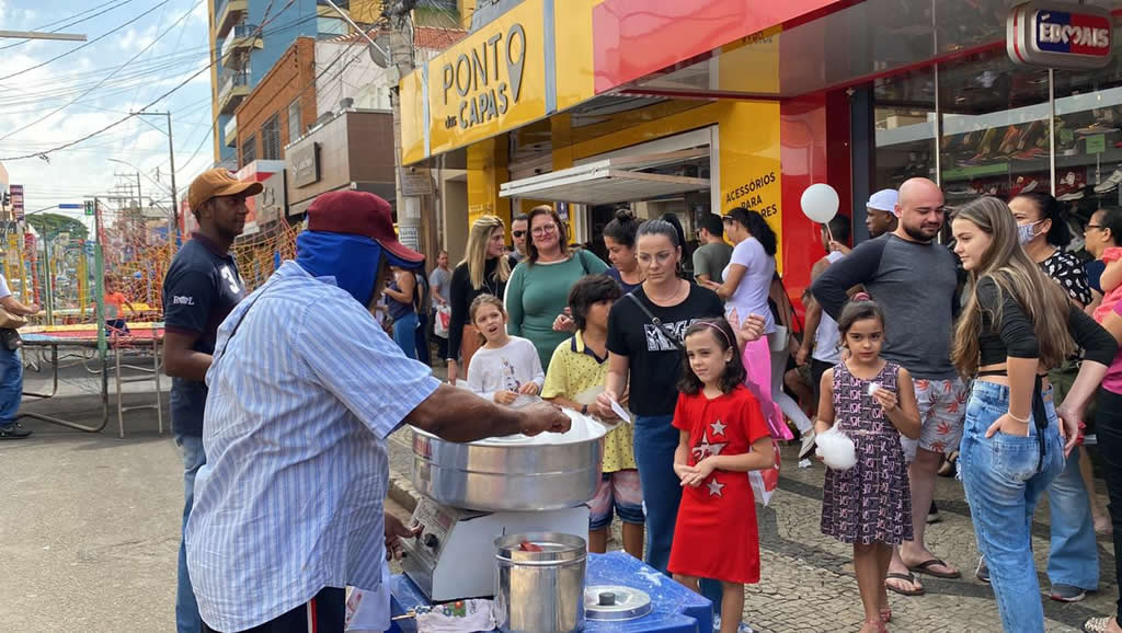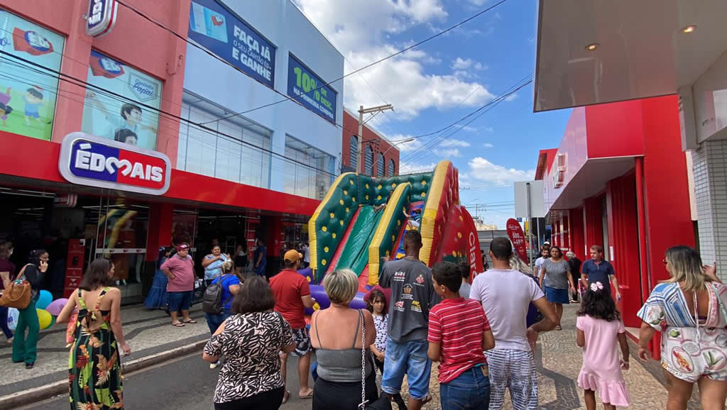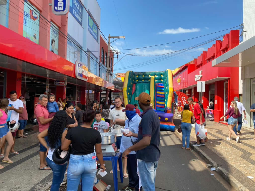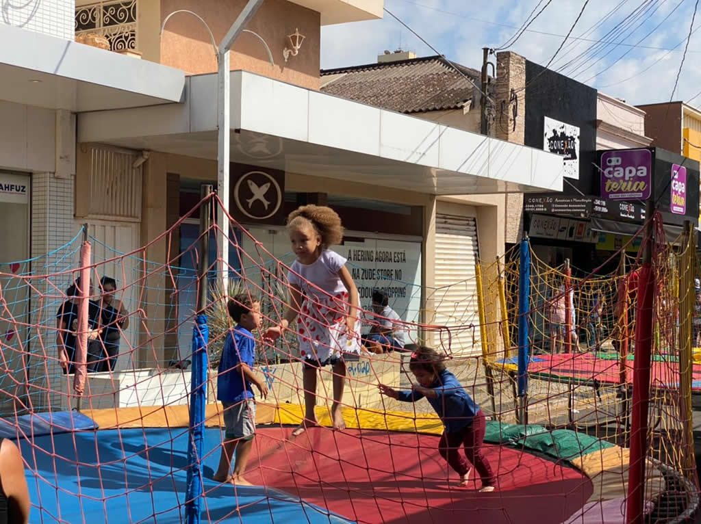 O trecho comercial da Rua Coronel João Manoel ganhou brinquedos infláveis, pula-pula, música, pipoca e algodão doce para todas as crianças.