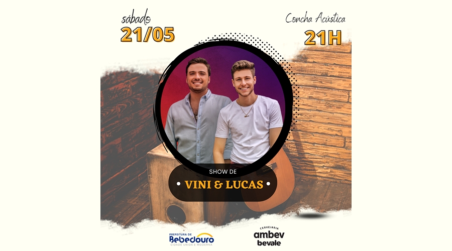 A semana fria termina em Bebedouro com um show muito esperado pelo público sertanejo. Vini & Lucas vão aquecer os corações apaixonados neste sábado (21), a partir das 21h, na Concha Acústica. O evento pertence a programação dos 138 anos da cidade que segue até o final deste mês.