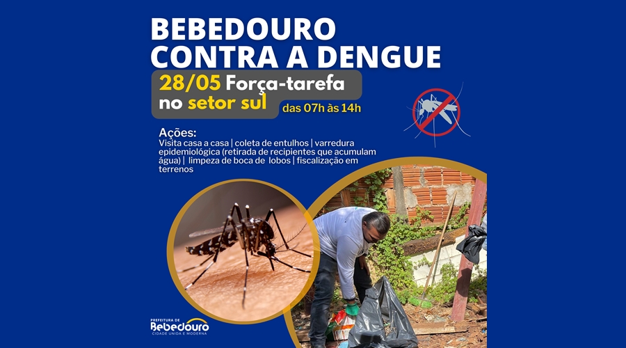 A força tarefa da Prefeitura de Bebedouro segue a todo vapor e, agora, chega ao setor sul da cidade. Profissionais de vários setores vão “varrer” os bairros União I e II, Tropical I e II, Boa Esperança e São Carlos a partir deste sábado (28), das 07h às 14h.