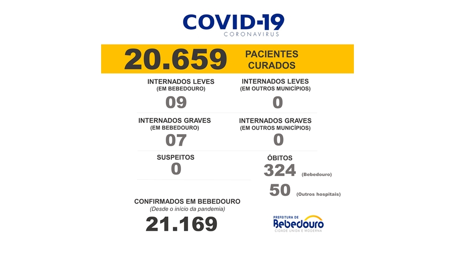 Até o momento, o município contabiliza 21.120 casos confirmados da Covid-19.