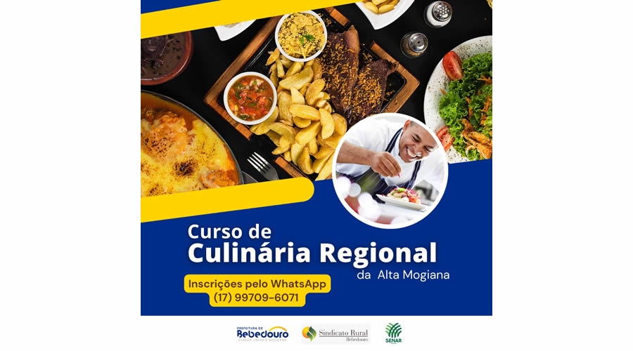 O Fundo Social de Solidariedade (FSS), em parceria com o SENAR e o Sindicato Rural de Bebedouro, está com as inscrições abertas para o curso de Curso de Culinária Regional da Região da Alta Mogiana. Os interessados devem apresentar RG e CPF pelo WhatsApp (17) 3342-4504. As vagas são limitadas.