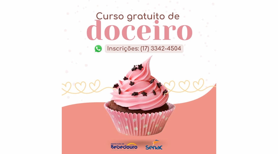 O Fundo Social de Solidariedade (FSS), em parceria com o Senac, está com as inscrições abertas para o curso de Curso de Doceiro. Os interessados devem apresentar RG e CPF pelo WhatsApp (17) 3342-4504. As vagas são limitadas.