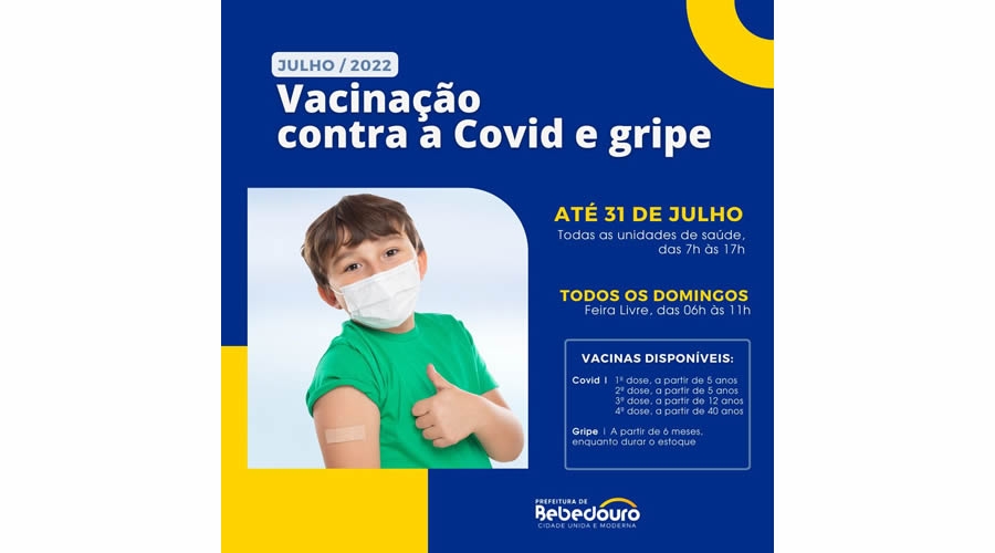 As vacinas também serão aplicadas na Feira Livre nos dias 24 e 31 de julho, das 6h às 11h.