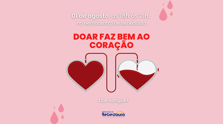 O Hemocentro de Bebedouro realiza nesta segunda-feira (01/08) mais uma coleta noturna. Os interessados em ajudar podem comparecer das 18h às 21h, na unidade localizada no Hospital Municipal Júlia Pinto Caldeira.