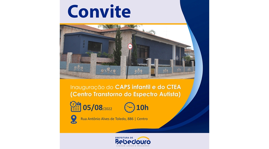 As famílias de Bebedouro passam a contar uma estrutura moderna para atender a saúde mental das crianças. A Secretaria Municipal de Saúde inaugura na próxima sexta-feira (05/08), às 10h, o CAPS Infantil e o CTEA (Centro Transtorno do Espectro Autista).