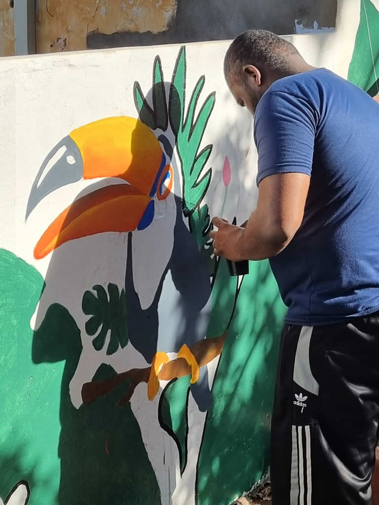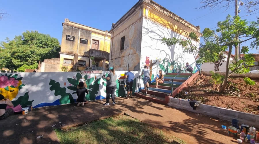 A ONG Buriti, em parceria com a Prefeitura de Bebedouro, está revitalizando a Praça Altino Arantes, localizada em frente à Estação Cultura. A pintura artística do muro aconteceu neste sábado (13). O espaço também ganhará um painel sobre a fauna e flora e o plantio de flores ornamentais de diversas cores.