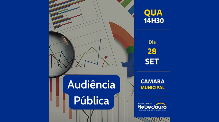 A Prefeitura de Bebedouro fará nova audiência pública para apresentar dados do orçamento. O Departamento Financeiro demonstra os relatórios de gestão do 2º quadrimestre de 2022 nesta quarta-feira (28), às 14h30, na Câmara Municipal.