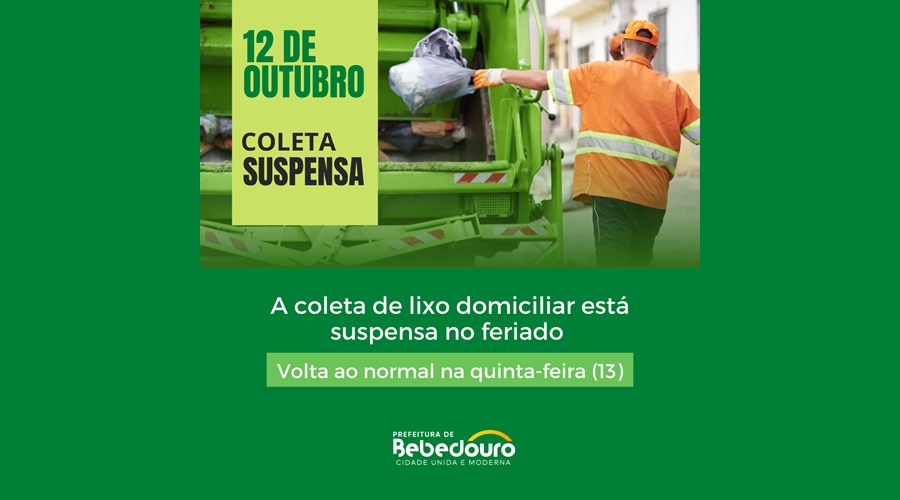 A coleta de lixo domiciliar está suspensa no feriado de 12 de outubro. Já o Hospital Júlia Pinto Caldeira, Guarda Municipal, UPA e demais serviços essenciais funcionam normalmente.