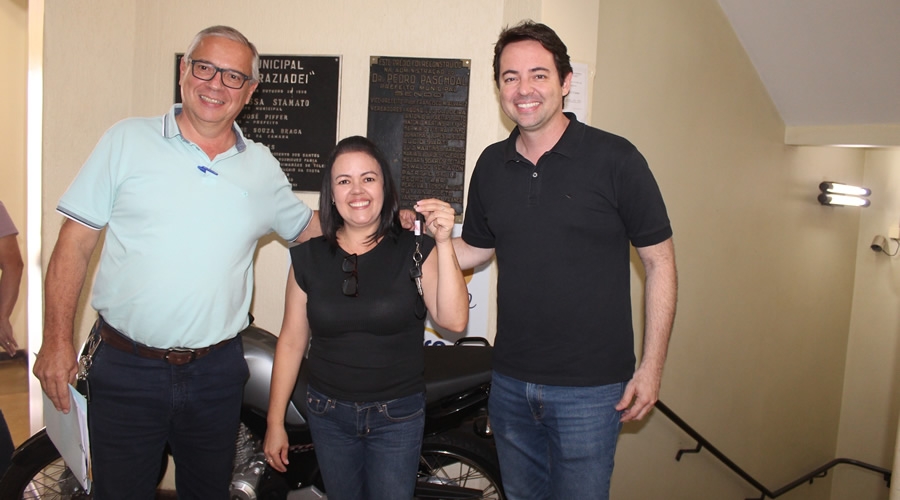 O prefeito Lucas Seren entregou as chaves para a moradora. “Já sorteamos cinco smarts TV led 65” e fico muito feliz por entregar nossa primeira moto. A campanha é um incentivo para os bons pagadores e ajuda a prefeitura manter os investimentos nas escolas, na saúde e na segurança pública. Ainda dá tempo de colocar as contas em dia e concorrer a duas motocicletas até o final do ano”, informa.