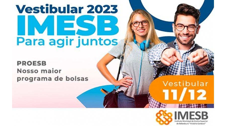 O IMESB (Instituto Municipal de Ensino Superior de Bebedouro - Victório Cardassi") abre inscrições para o Vestibular e Processo Seletivo de Bolsas Proesb 2023. Os cursos ofertados são: Administração (diurno/noturno), Arquitetura e Urbanismo (diurno/noturno), Ciências Contábeis, (noturno), Direito (diurno/noturno), Engenharia Agronômica (diurno/noturno).