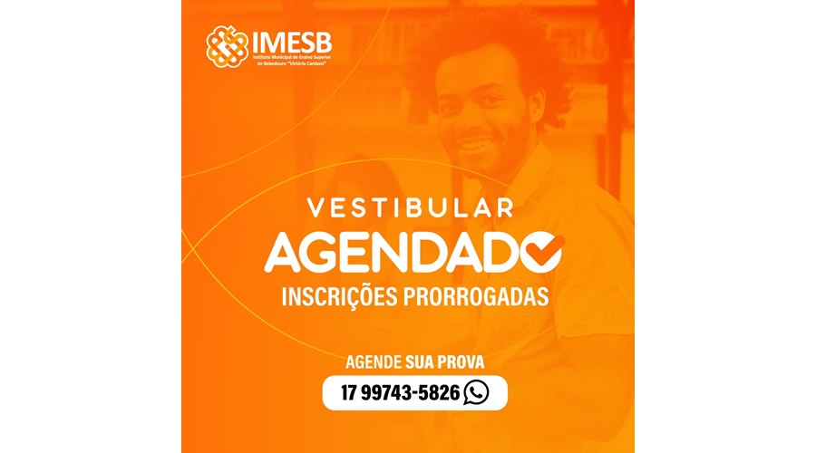 O Instituto Municipal de Ensino Superior de Bebedouro (IMESB) prorrogou o prazo de inscrições para o Vestibular Agendado 2023. Os candidatos interessados podem concorrer a uma vaga em um dos seguintes cursos: Administração, Arquitetura e Urbanismo, Ciências Contábeis, Direito e Engenharia Agronômica.