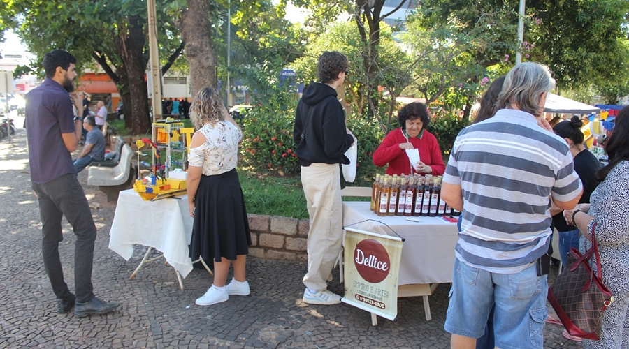 Durante a feira, quem passou pela praça teve a oportunidade de adquirir produtos variados, desde artesanato clássico até objetos tecnológicos, além de bebidas e cosméticos artesanais.