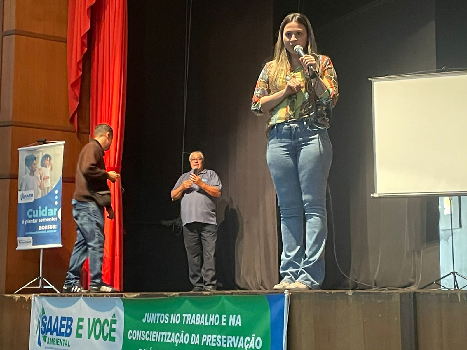 O presidente do SAAEB Ambiental, Gilmar Feltrim, explicou que o principal objetivo do evento foi ampliar a conscientização criando multiplicadores da importância de se preservar o Meio Ambiente. “É muito importante preservarmos nossos recursos naturais através de ações como o destino correto do lixo domiciliar, reciclagem, uso consciente da água entre outros pontos”, afirma Feltrim acompanhado do secretário da Educação, Hélio Souza.