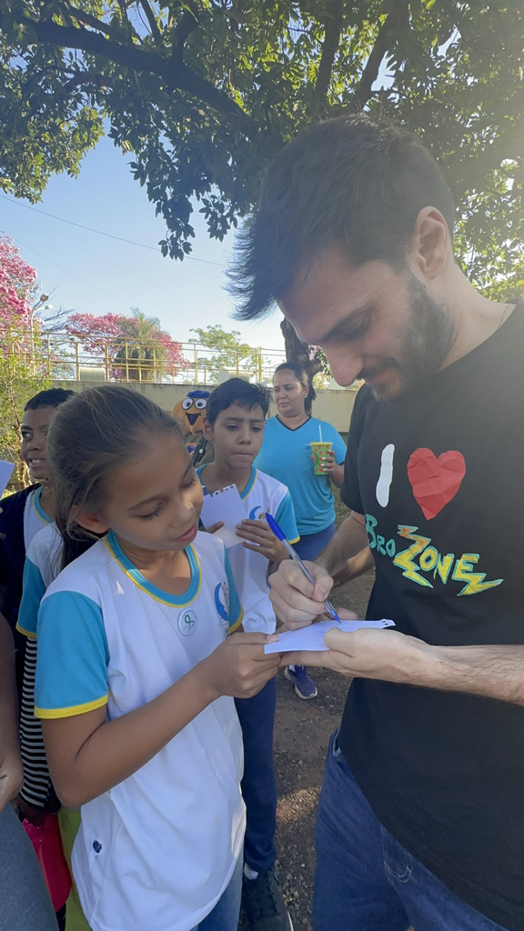 Durante o evento o ator, dublador e apresentador brasileiro, Hugo Bonemer, realizou um bate papo envolvendo os alunos sobre a preservação do Meio Ambiente de forma lúdica e divertida.